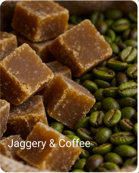 We are committed to providing only the purest products, featuring 100% organic jaggery and premium, naturally-sourced coffee beans.